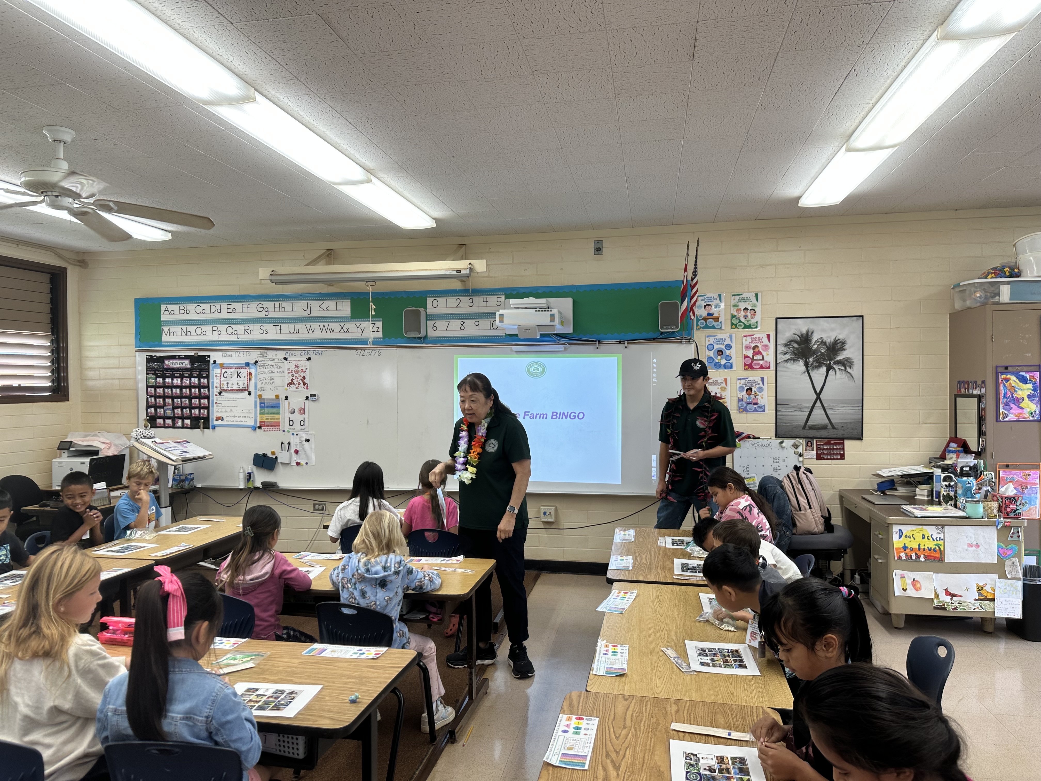 Through a lively game of Career Bingo, students were introduced to the types of roles that keep our community thriving. They learned about opportunities in farming and ranching, golf course operations at Puakea Golf Course, and food service at Puakea Grill. They heard about the engineers and surveyors at Kodani & Associates Engineers, contractors and water system operators at AJAR Inc., utility operators at Aqua Engineers, and tour and activity workers at Kaua‘i Backcountry Adventures, and more.